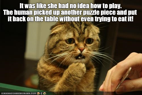 Whatever can tickle your funny bone as it relates to puzzles can be here. You probably remember the video. It is not a simple sport.
